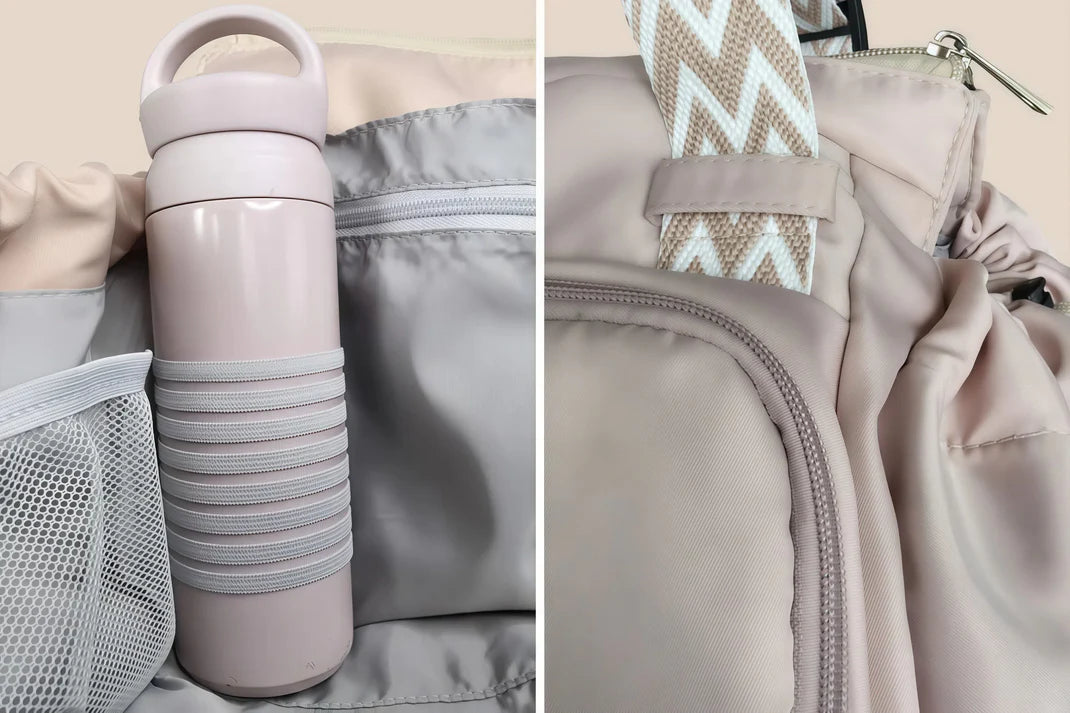Değerli eşyalar için gizli fermuarlı cepler ve her şeyi güvende tutan sağlam kapaklar içerir.